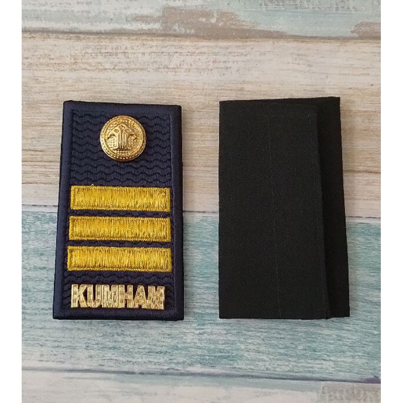 untuk pegawai Kemenkumhamdasar dan strip bordirlogo dan tulisan logam cor sepuhbelakang pakai v