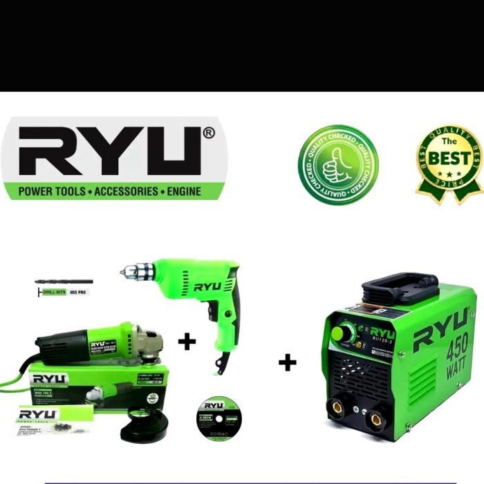 Name: Promo 3 Item Paket Mesin Las Ryu 450 Bor 10mm Ryu + Gerinda 4 Inch Ryu