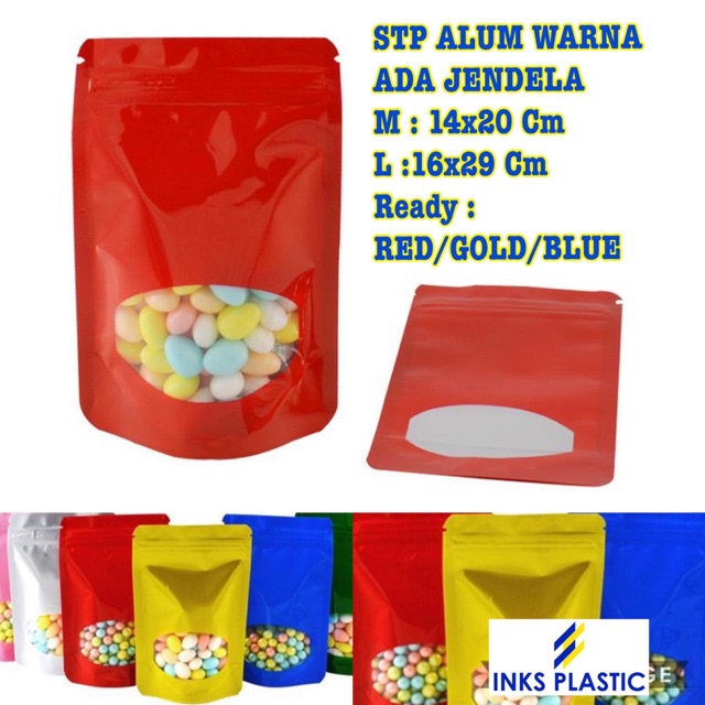 STANDING POUCH ALUMUNIUM WARNA JENDELA SIZE L ( isi 25 )Warna request harap dicantumkan, jika tidak akan kami kirim ra