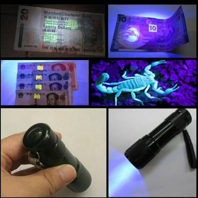 Lampu senter khusus ini memiliki lampu ultraviolet. Senter jenis ini dapat digunakan untuk membantu Anda memeriksa benda-benda yang samar apabila dilihat oleh mata tanpa bantuan. Dengan ini Anda dapat mengecek keaslian uang, bekas jejak, dll.Features400nm Wavelength Ultraviolet LEDSenter Ultraviolet ini memiliki spektrum sampai dengan 400nm dan juga jarak tembak yang cukup jauh sehingga memudahkan Anda mengecek sidik jari, kartu elektronik,uang kertas, dll.Aluminium BodyBody senter ini terbuat dari bahan aluminium sehingga sangat kokoh dan durable untuk penggunaan dalam jangka waktu lama.Powered By AA BatteryDengan 3 buah AAA baterai yang mudah ditemukan di berbagai toko, senter ini akan bekerja dengan waktu pemakaian yang sangat lama dan hemat.One Handed OperationSenter ini memiliki bentuk yang tidak terlalu besar sehingga dapat digunakan hanya dengan 1 tangan saja.Package ContentsBarang-barang yang Anda dapat dalam kotak produk:1 x Senter LED Mini Ultraviolet UV 400nm 9 LEDNote: (Tidak dengan Baterai)#olahragagunung#olahragaoutdoor#survival#lampucamping#perlengkapanrumah#alatpertukangan#perkakas#dekorasi#hobi#toolbox#senter#kelistrikan#lampu#pencahayaan#led#pompaair#pompaangin#meteran#serbaserbi#hiking#alatpancing#pancinga