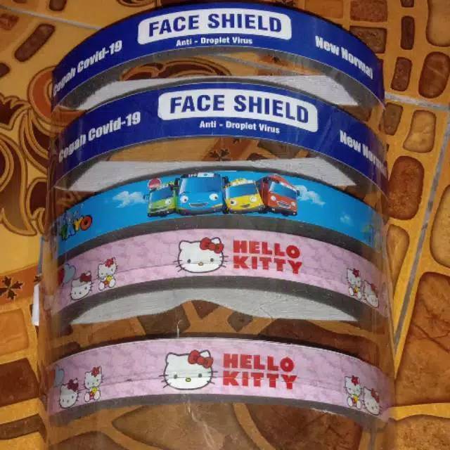 Ready face shield anak karakter❤ hello kitty❤ lol❤ tayo❤ spongebob❤ spiderman❤ batman❤ polos standart tulisan face shieldTulis karakter yg dipilih saat checkoit y kak