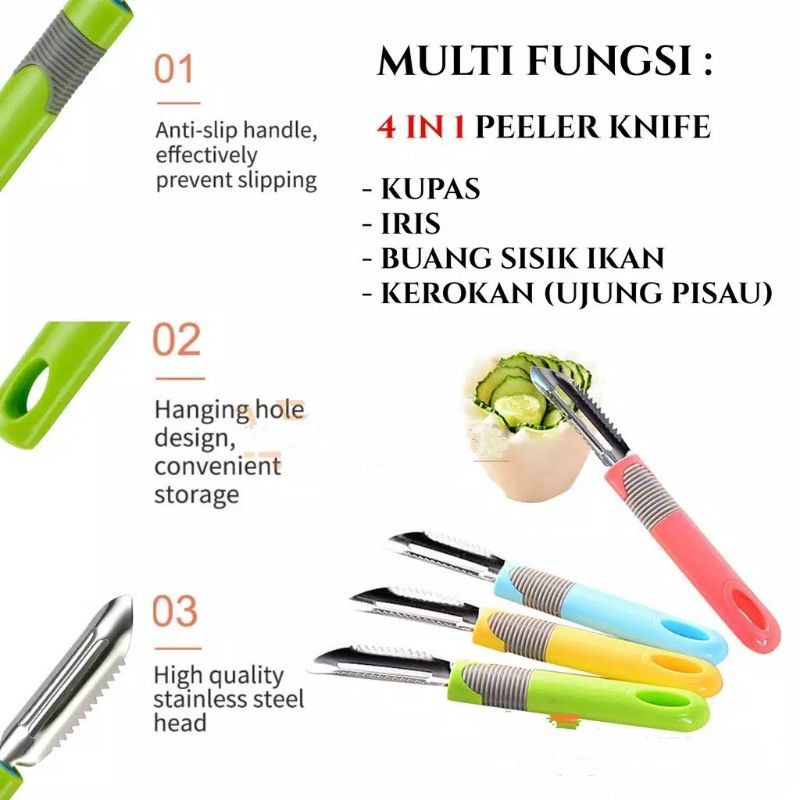 Name: Pisau Kupas Buah Anti Slip / Pisau Sayur / Alat Bersih Sisik Ikan / Peeler Knife / Pisau Buah