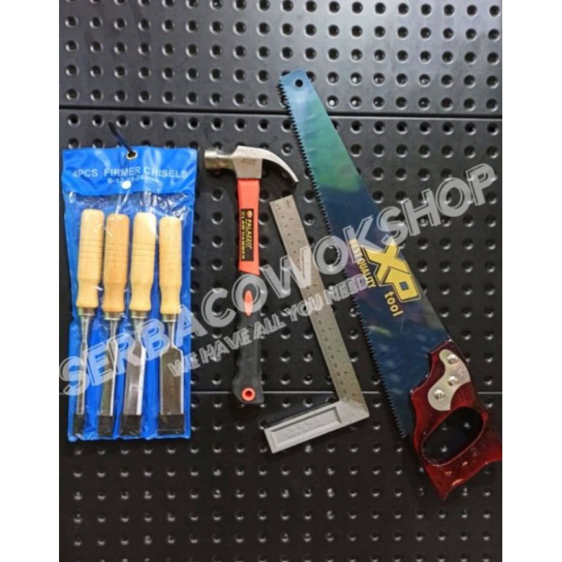 Name: Paket Alat Pertukangan [palu Fiber - Pahat Set Kayu - Siku Meter - Gergaji Kayu]
