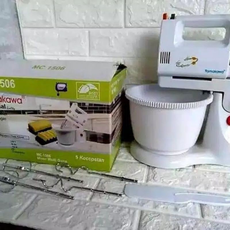 selamat datang ditoko bnw serba murah jangan lupa follow toko kami agar selalu update barang-barang unik lainnya. Kami sangat mengharapkan feed back penilaian kepada toko kami setelah barang diterima-ORDER = SETUJU-barang non garansi-no retur- membeli = setuju dengan semua ketentuan diatas !#Untuk keamanan paket dapat membeli BUBBLE WARP yang tersedia di lapak kami. Disarankan WAJIB ANSURANSI (kami tidak menanggung apalagi rusak karena pengiriman, anda dapat mengklaim langsung ke pihak expedisi)* Harap packing extra barang mudah pecah/penyok tambahkan bubble wrap.Deskripsi Stand mixer yamakawa MC 1506Dilengkapi dengan pengaduk adonan bahan stainless steelMudah dibersihkanTersedia tombol untuk melepas pengaduk agar mudah dibersihkanDaya listrik 120 WPercepatan 5 kecepatanGaransi Resmi Yam