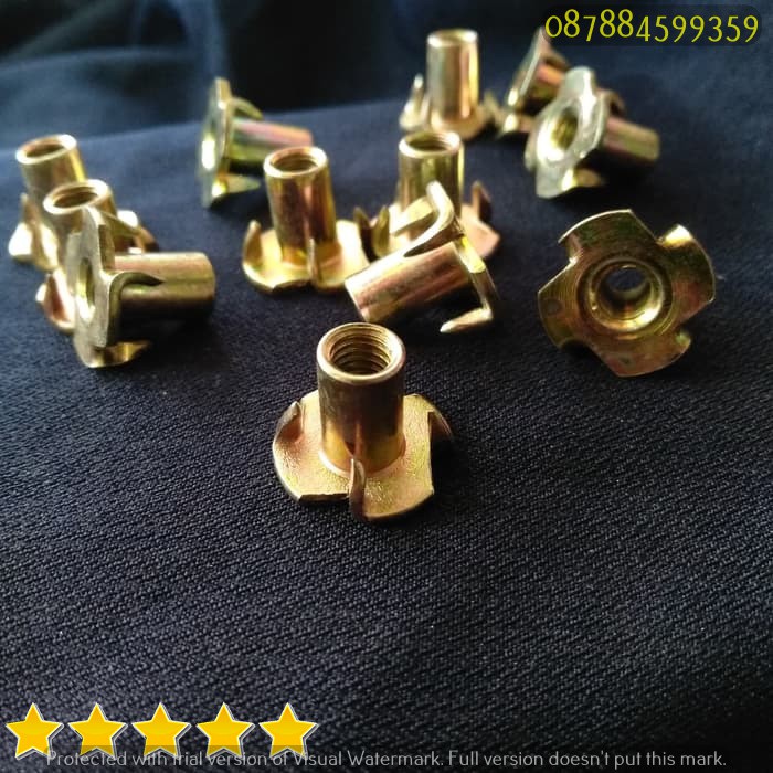 M6x14 Mur Cakar Tee Nut Warna Kuning4 prongDrat M6Panjang total 14mmTebal Flange ~ 1,5mm#sekrup #baut #sekrupruping #sekruproofing #sekrupbaja #mur #alattukang #skrup #