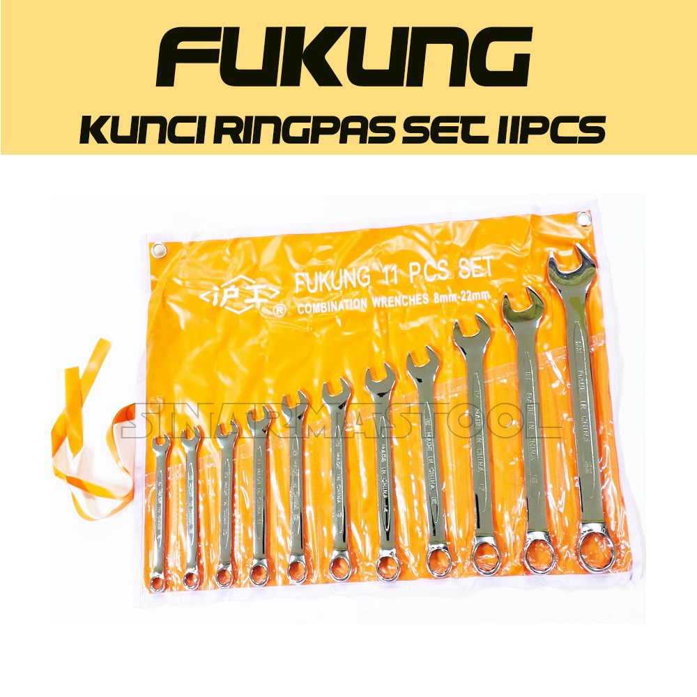 Deskripsi kunci ring pas set 11 pcs 8 - 22 mm fukung / ringpas asliKunci Ring Pas Set- Merek Fukung- Isi 11pcs- Bahan chrome vanadium- Ukuran 8 - 22mm ( 8, 9, 10, 11, 12, 13, 14, 15, 17, 19, 22mm)- Chrome finis