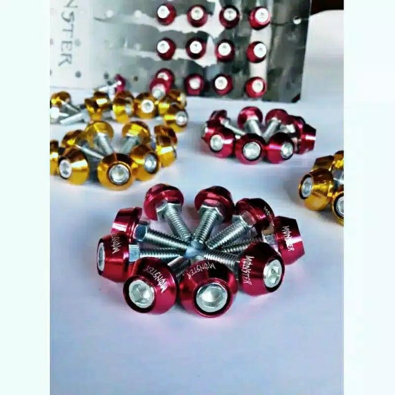 baut + ring monil aluminium ukuran baut 6mm/baut kunci 10harga per 1 biji tersedia warna merah / gold / biru / s