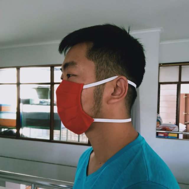 Masker Kain Bahan OxfordHarga 55rb/LusinWarna Merah dan HitamAda Earloop dan Tali untuk HijabBisa Mix warna dan