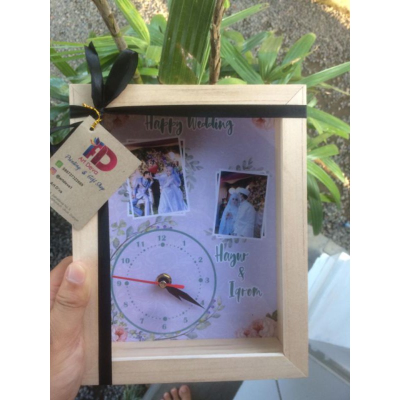 Bingkai ukuran 20x15cm, jam berdetak tdk termasuk baterai, bebas request tulisan . foto maksi